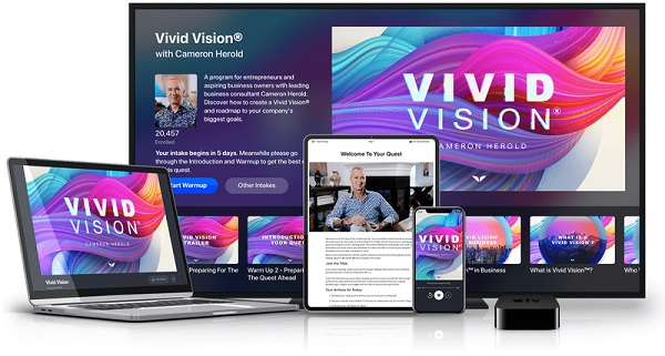 Vivid Vision® is a 10-day online program that guides you through Cameron’s signature methodology for designing a hyper-vivid 3-year game plan for your business’ best future.